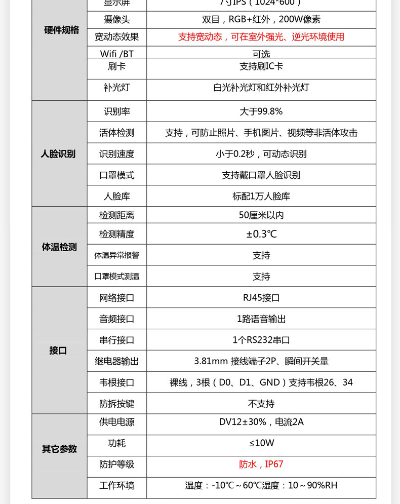 (*由于產品升級或其他原因,明創IDR-R108人臉識別測溫機產品實際參數有可能變更,以實際產品為準。本文中的所有陳述、信息和建議也不構成任何明示或暗示的擔保)