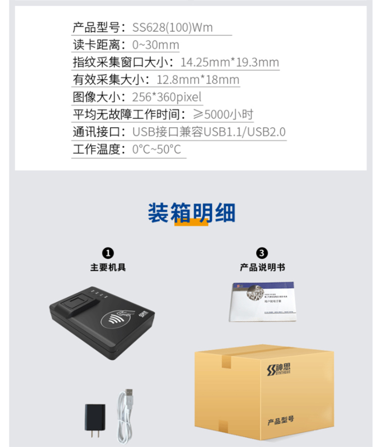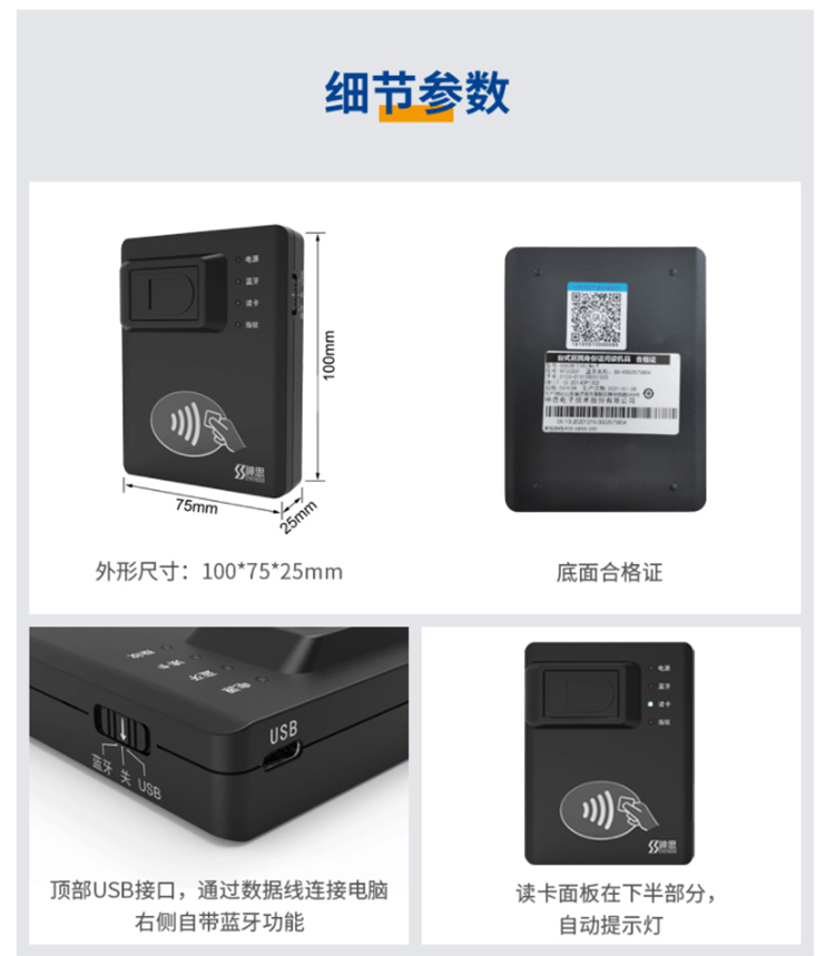 (*由于產(chǎn)品升級或其他原因,神思SS628-100Wm藍(lán)牙身份證讀卡器產(chǎn)品實際參數(shù)有可能變更,以實際產(chǎn)品為準(zhǔn)。本文中的所有陳述、信息和建議也不構(gòu)成任何明示或暗示的擔(dān)保)