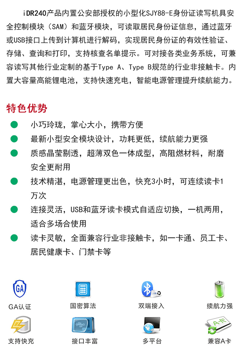 (*由于產(chǎn)品升級(jí)或其他原因,精倫idr242藍(lán)牙身份證閱讀器產(chǎn)品實(shí)際參數(shù)有可能變更,以實(shí)際產(chǎn)品為準(zhǔn)。本文中的所有陳述、信息和建議也不構(gòu)成任何明示或暗示的擔(dān)保)